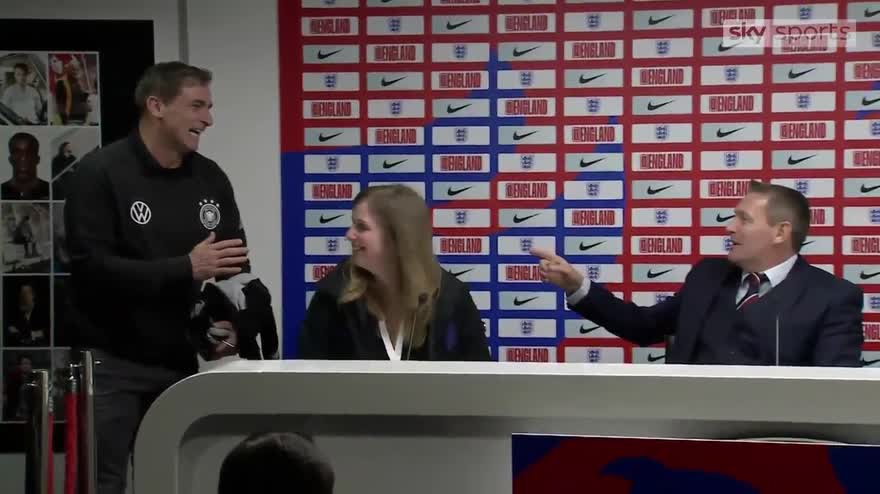 England U21 manager Aidy Boothroyd shared a joke with Stefan Kuntz after being interrupted his German counterpart in a post-match interview.