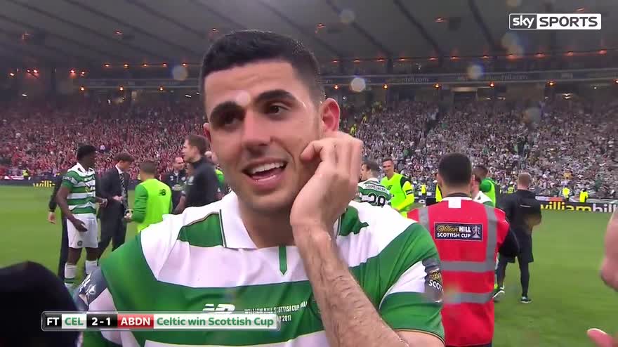 Scott Brown says winning the Treble is the best feeling ever after Celtic beat Aberdeen 2-1 to win the Scottish Cup.