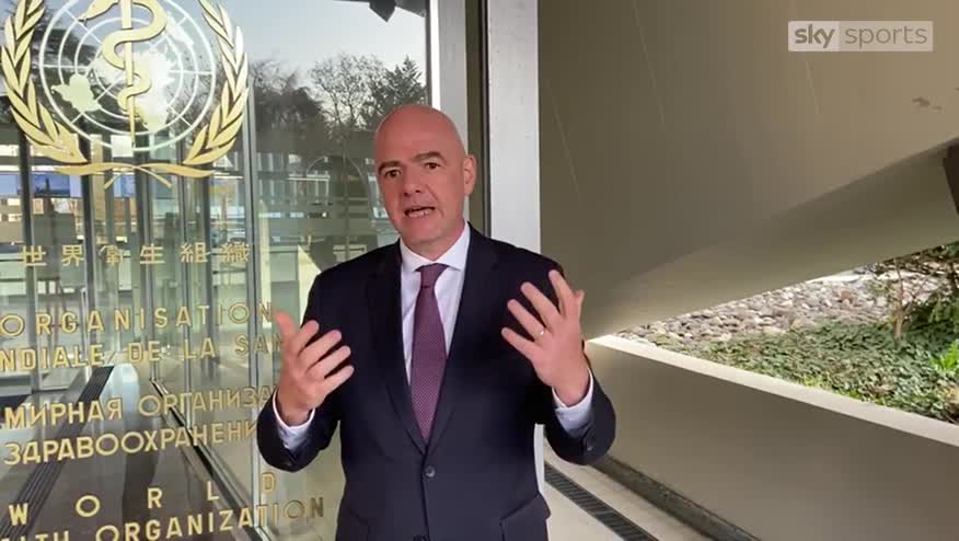 FIFA President Gianni Infantino says the football community must work together to help beat coronavirus.