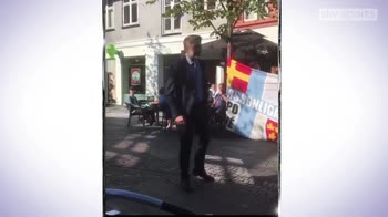 Malmo chief executive Niclas Carlnen celebrates with the club's fans following their qualification for the Europa League.