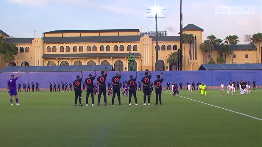 More than 100 players raised their right fists and took a knee before the MLS is Back Tournament opener on Wednesday, in solidarity with the Black Lives Matter movement.