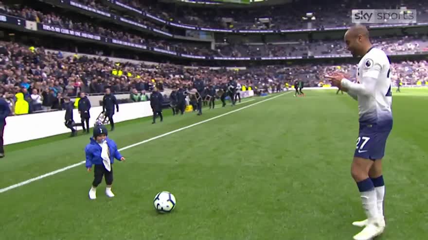 Lucas Moura celebrated scoring a hat-trick in Tottenham's 4-0 win against Huddersfield by bringing his son onto the pitch at full time.