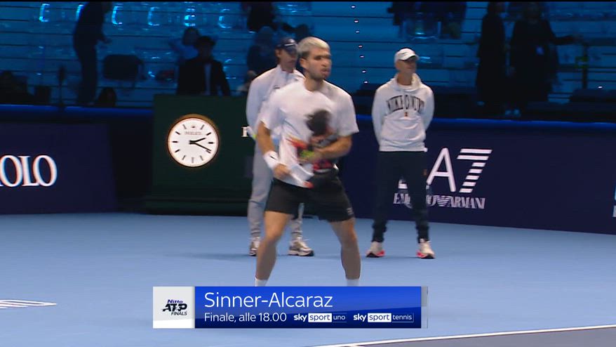 Dopo Sinner, è stata la volta di Alcaraz: ultimo allenamento per lo spagnolo prima della gran finale a Torino contro l'azzurro. Stesso sparring partner, il portoghese Joao Sousa.