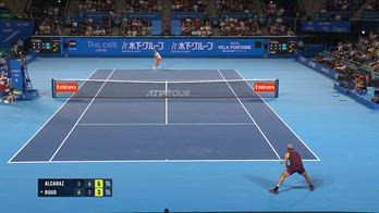 Carlos Alcaraz non finisce di stupire: nella semifinale vinta contro Casper Ruud a Tokyo, il punto più spettacolare è arrivato con una volèe... in tuffo! Guarda il video.