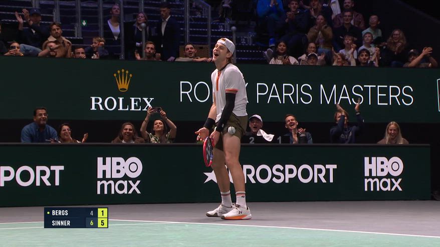 Divertente siparietto tra Jannik Sinner e Zizou Bergs al Masters 1000 di Parigi. Nel secondo set, il primo punto del settimo game è uno show: Bergs fa tre miracoli, poi il suo passante di dritto esce di poco. Il belga si dispera, sorride e poi mima con le mani: il tutto tra le risate di Sinner dall'altra parte della rete.