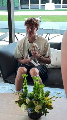 Non solo momenti pieni di tensione (i match) e gli allenamenti, per il numero 1 al mondo a Cincinnati c'è anche spazio per attimi di relax. Uno di questi (dolcissimo), un incontro ravvicinato con un cucciolotto: dopo averlo coccolato, Jannik lo dà in braccio al suo allenatore Darren Cahill. Sarà un nuovo 'porta fortuna'? (video @Cincytennis - Instagram).