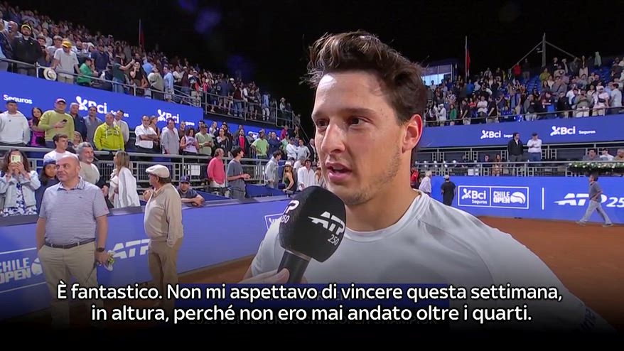 Luciano Darderi esulta dopo il suo 5° titolo della carriera, il primo a Santiago: "Non mi aspettavo di vincere qui, non ero mai andato oltre i quarti. E' fantastico. Vincere così presto un titolo mi dà molta fiducia per il resto della stagione". Guarda il video.