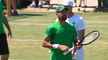 Il riscaldamento di Djokovic prima della semifinale