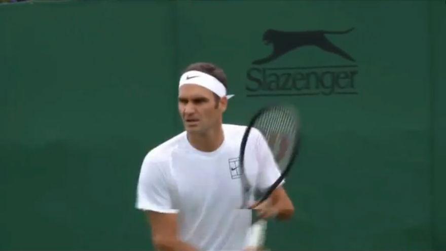 Roger Federer, appena arrivato a Wimbledon, si allena e prova i nuovi campi in attesa dell'inizio della competizione .