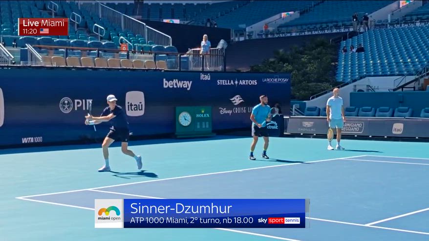 Sinner, l'allenamento a Miami alla vigilia dell'esordio