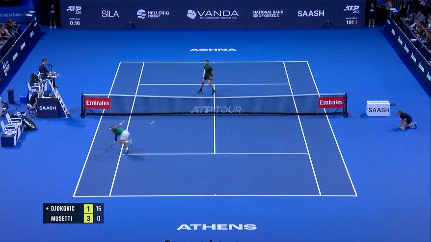 Lorenzo Musetti regala spettacolo nella finale di Atene contro Novak Djokovic. L'azzurro gioca due punti fenomenali nel quinto game del primo set: prima buca Nole con un incredibile recupero sulla palla corta del serbo, poi gioca un lob millimetrico con il dritto in corsa. Incredulo Djokovic che sorride verso il suo angolo.