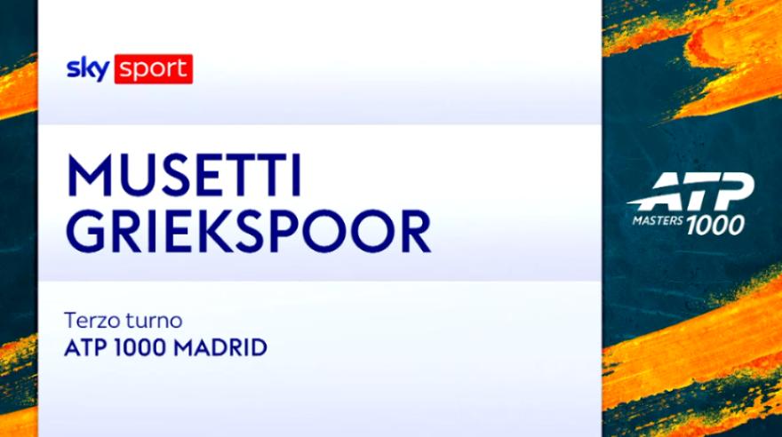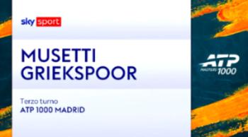 Lorenzo Musetti passa anche il 3° turno al Madrid Open e accede agli ottavi: battuto Tallon Griekspoor in due set (6-4, 7-5). Subito una gran partenza dell'azzurro che poi reagisce immediatamente al controbreak subito. Nel secondo parziale va di nuovo in vantaggio, rischia di cadere ma alla fine con classe si prende il set e la qualificazione. Guarda gli HIGHLIGHTS del match.
