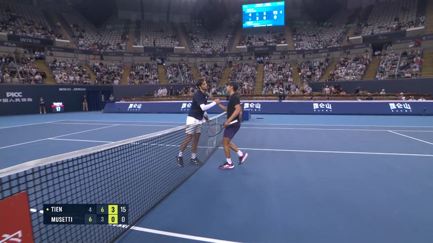 Lorenzo Musetti è costretto al ritiro nel corso della sfida contro Tien. Per il numero 9 al mondo un problema al gluteo sinistro avuto nel corso del secondo set, dopo che aveva vinto il primo 6-4. Con questo ritiro, l'americano avanza in semifinale.