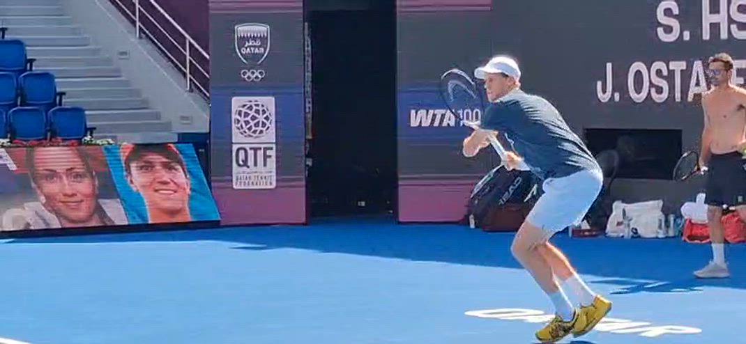 Jannik Sinner riparte da Doha. Nel VIDEO l'allenamento del tennista azzurro sul Centrale con Medvedev. In campo con lui il coach Vagnozzi e il preparatore atletico Ferrara.