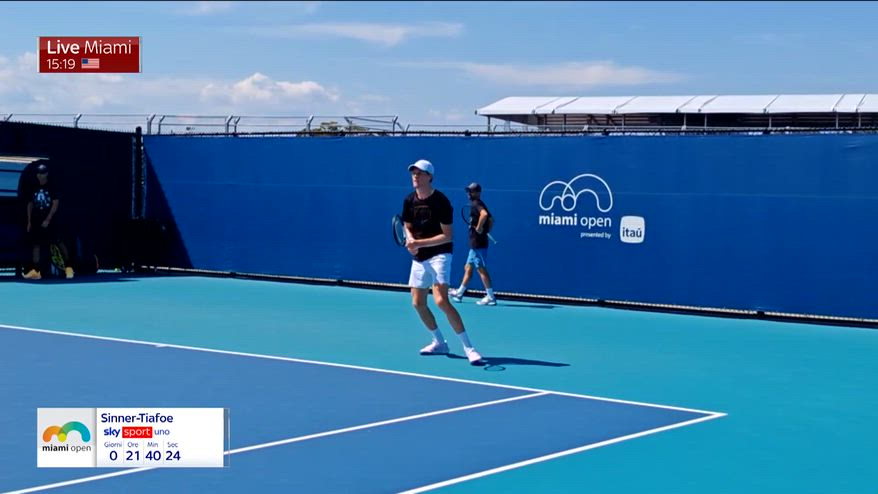 Allenamento alla vigilia dei quarti di finale per Jannik Sinner che giovedì alle 18 (diretta su Sky Sport Uno, Sky Sport Tennis e in streaming su NOW) scenderà in campo contro Frances Tiafoe. L'azzurro ha svolto la prima mezz'ora di allenamento con due sparring contemporaneamente in campo, alla ricerca di maggiore ampiezza per trovare gli angoli e soluzioni dalla parte del dritto. Nella seconda parte è arrivato un terzo sparring: con lui, in campo da solo, ha provato molti diagonali stretti. Una seduta segnata dal vento (forte e contrario) e dal grande caldo: le news dal nostro inviato a Miami, Angelo Mangiante.