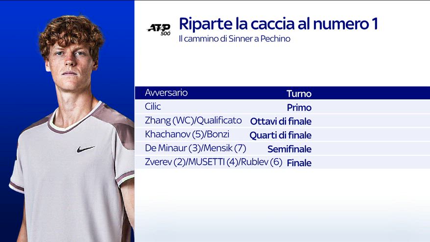 Atp Pechino, al 1° turno sarà Sinner-Cilic