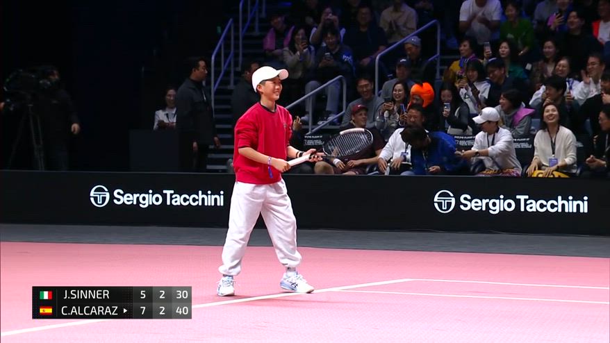 Il momento più divertente dell’esibizione di Seul è firmato da Sinner, che lascia il campo e consegna la racchetta a un giovane, permettendogli di prendere il suo posto. Nasce così uno scambio improvvisato con Alcaraz: al secondo tentativo il giovane coreano mette a segno un punto, ritenuto valido, scatenando l’esultanza divertita di Sinner dagli spalti e l’entusiasmo del pubblico.