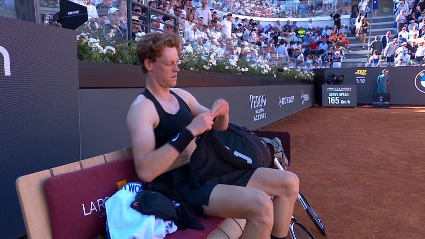Sinner toglie il GPS dopo un set con De Jong