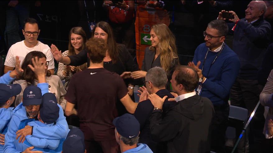 Campione a Torino per il secondo anno di fila, Sinner si è subito diretto a fine match verso il suo box dove c'era anche la fidanzata Laila Hasanovic. Prima un dolce abbraccio, poi in campo la fotografia insieme al resto del team. In campo, però, c'era anche Snoopy, il cagnolino della modella danese.