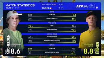 Sinner-Michelsen, le statistiche chiave della vittoria