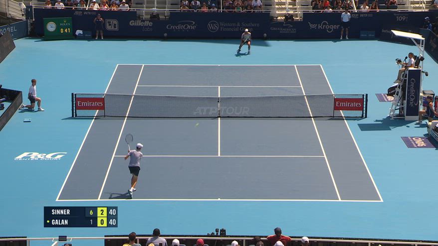Nel video, uno dei punti più di belli di Jannik Sinner nella sfida contro Daniel Galan al 2° turno del Masters 1000 di Cincinnati. Nel corso del terzo game del secondo set, il numero 1 al mondo ha conquistato il punto (che lo ha poi portato a palla break, non sfruttata) con una meravigliosa smorzata .