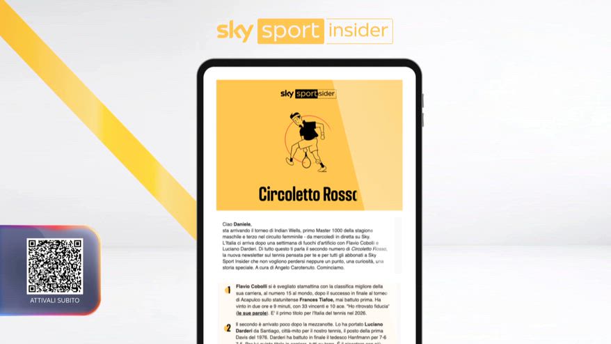 Su Sky Sport Insider arrivano due nuove newsletter con le grandi firme di Sky Sport: 'Circoletto Rosso' dedicata al tennis e 'Speed', dedicata al mondo dei motori.