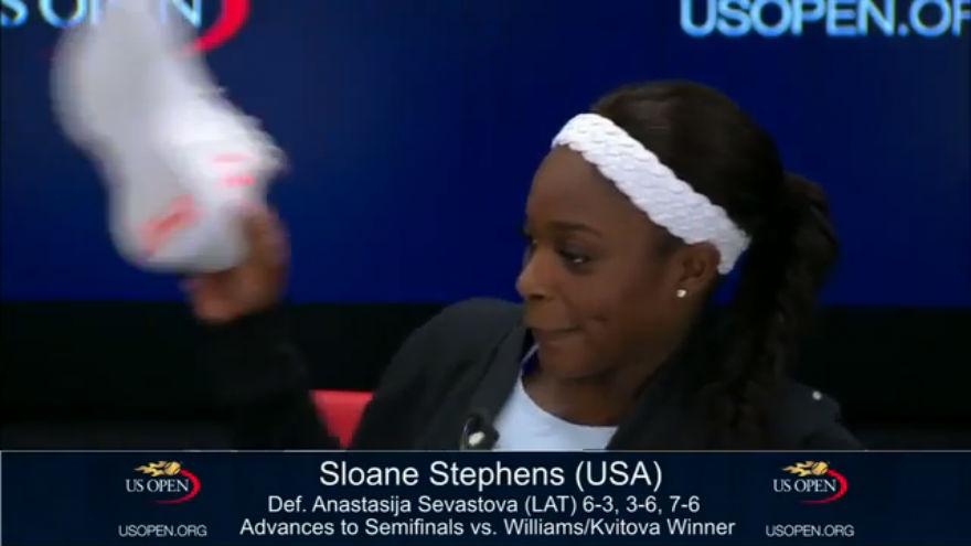 La tennista americana ha una reazione esagerata nella conferenza stampa dopo i quarti di finale degli US Open.