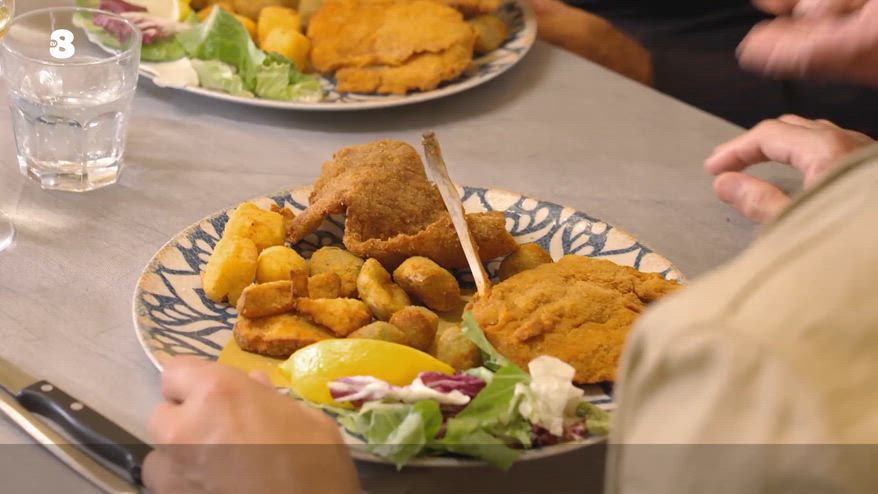 Il viaggio prosegue all’Osteria Anno Mille, dove Gabriele propone la sua specialità: il fritto misto all’ascolana tradizionale, composto da una cotoletta d’agnello e una di manzo, un’oliva all’ascolana classica e una al tartufo, funghi, carciofo viola e, per finire, il cremino.